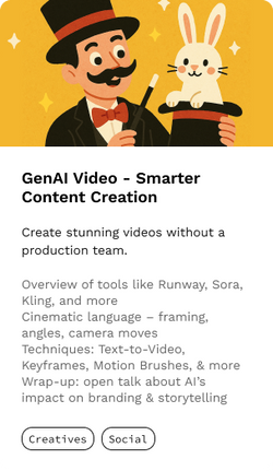 Discover how GenAI is reshaping the way we create, design, and communicate. Perfect for creative teams, marketing pros, UX/UI designers, and innovation leaders with hands-on tools and real-world use cases.